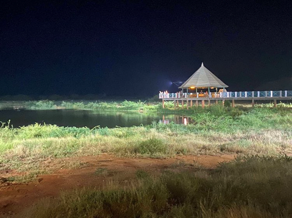 The view of the water hole often visited by elephants from Red Elephant Hotel