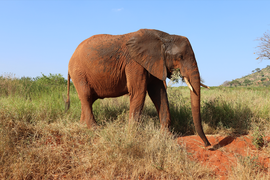 In Tsavo East National Park tourists have the possibility to see 4 of The Big African Five: African Elephants, cape buffalos, leopards, lions and (excluded) rhinoceroses. The largest of them, the African Elephant, is the biggest mammal living on land. The ones living in Tsavo tend to have red skin, which is caused by bathing in red mud and dust of ferrasols- the type of soil submitted to chemical weathering.